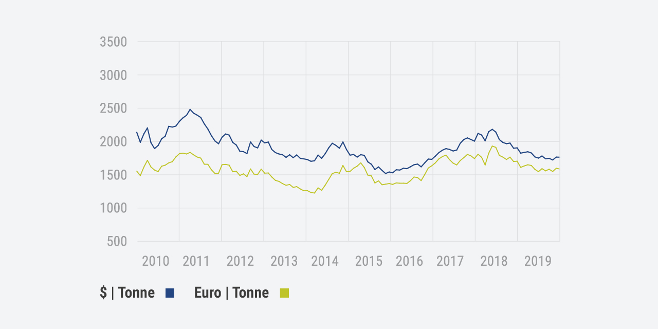 Die Preise für Aluminium werden seit 1978 täglich an der London Metal Exchange (LME) ausgehandelt. Wichtiger Einflussfaktor für den Aluminiumpreis sind die Energiekosten bei der Metallherstellung.