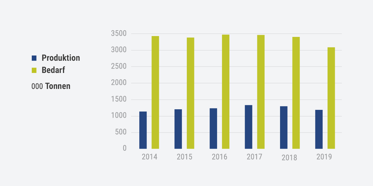 In Deutschland wurden im Jahr 2019 insgesamt 2.029.900 Tonnen Walzprodukte hergestellt. Dies ist ein Anstieg um neun Prozent gegenüber dem Vorjahr. Außerdem wurden im Jahr 2019 noch 522.700 Tonnen Strangpressprodukte, 18.400 Tonnen technische Drähte sowie 5.900 Tonnen Leitmaterial hergestellt.